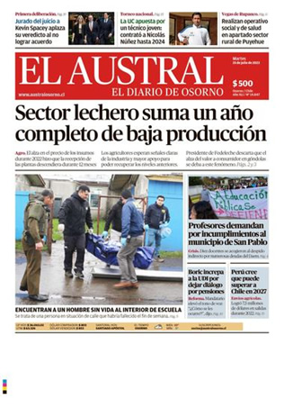 - 44,5% de la leche del país se produce en Los Lagos y en esta zona la baja en la producción entre mayo de 2022 y mayo de 2023 alcanzó 7,6%, lo que en litros fueron 31,2 millones menos que en el periodo anterior.