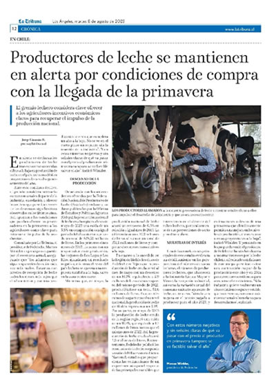 Consultado por La Tribuna, el presidente de Fedeleche, Marcos Winkler, expresó preocupación por el escenario actual, asegurando que 'los números que siguen apareciendo están cada vez más malos. Estamos con niveles de recepción de leche todos los meses más bajos que el año anterior y con una producción interna que completa un año a la baja. No se ve en el corto plazo un repunte sin la reacción de la industria'. 'Con estos números negativos y sin señales claras de qué va pasar con el precio al productor en primavera tampoco se ve factible salvar el año', indicó Winkler.