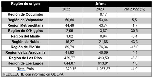 En ocho meses de 2023, las zonas con un mayor volumen de producción, las regiones de Los Lagos y Los Ríos, suponen un 81,4% de lo que recepciona la industria láctea mayor y que, a la fecha, mantienen un resultado negativo. En el resto del país lechero se aprecia una respuesta mixta.