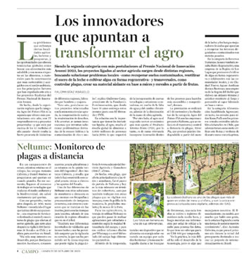 Con ese propósito, varios años después, en 2016, nació Neltume –recordando el lugar que habían ido de campamento–, una empresa de hardware destinada al control y monitoreo de plagas que afectan al sector agrícola, que siete años después ya vigila 3.600 hectáreas de frutales en Chile y se alista para aterrizar en Brasil.
