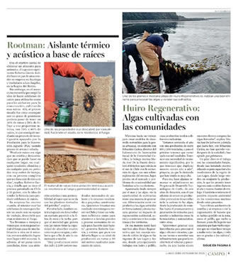 En la categoría de Recursos Naturales Arauco también resalta Huiro Regenerativo, una empresa de la Región de Los Lagos que promueve el cultivo de algas en forma regenerativa y colaborativa con las comunidades locales, y en Ciudad Nueva Aguas Andinas destaca Rootman, una empresa de la Región del Biobío que elabora un aislante término y acústico resistente al fuego y permeable al vapor fabricado en base a raíces.