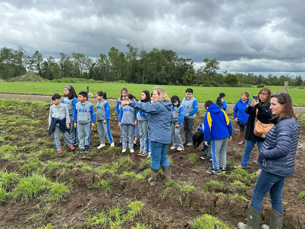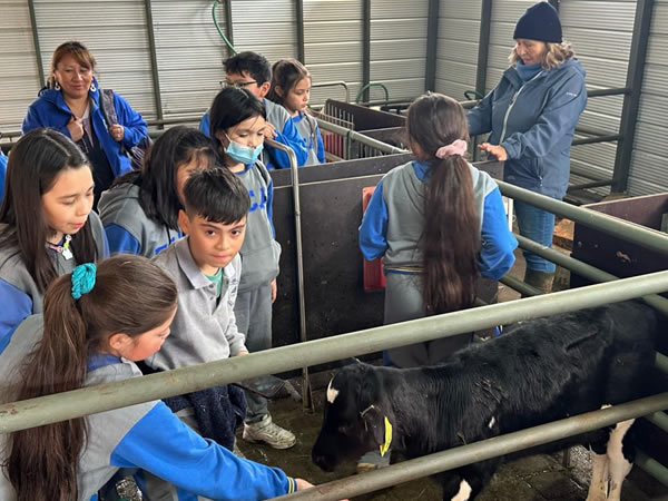 En una iniciativa educativa que buscó acercar a las nuevas generaciones al fascinante mundo de la producción lechera, la Asociación Gremial de Productores de Leche de Osorno (Aproleche Osorno), llevó a cabo esta semana, un enriquecedor Día de Campo en el fundo El Calabozo, propiedad de la silvoagropecuaria Richards, lugar donde la productora y directora de Aproleche Osorno, Sylvia Richards, ejerce como administradora. El evento contó con la participación de alumnos de 4to básico de la Escuela Claudio Arrau, quienes tuvieron la oportunidad única de sumergirse de lleno en la fascinante realidad de la producción lechera del sur del país.
