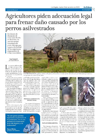 Fuente: https://www.latribuna.cl/agroforestal/2023/11/21/agricultores-piden-adecuacion-legal-para-frenar-dano-causado-por-los-perros-asilvestrados.html
