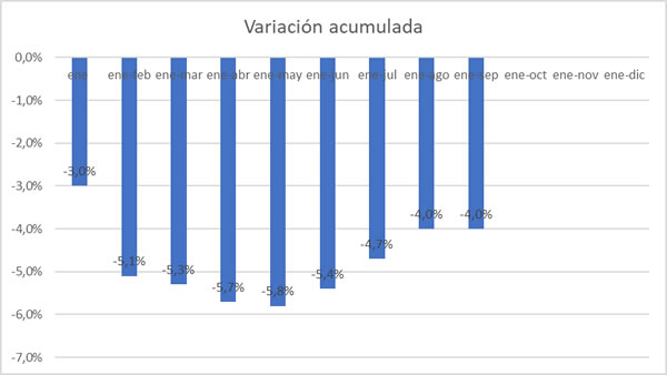 La producción de leche en septiembre de 2023 registra una variación negativa de un 3,8%. La diferencia supone 7,4 millones de litros menos, de 194,84 a 187,34 millones de litros.