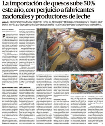 'Naturalmente, como gremio es deseable que esta expansión de la demanda interna sea abastecida en la mayor cantidad posible con leche chilena y esto hace necesario potenciar el trabajo de promoción para situar en primera posición el consumo de quesos nacionales frente a los de importación. En esta área estamos a través de Promolac, además de monitorear el mercado constantemente, para proteger a la producción nacional de eventuales daños', expresó.