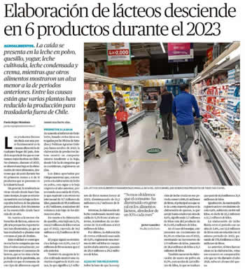 Los productos lácteos sin duda son una parte fundamental en la canasta alimenticia de cualquier hogar del país, donde la mayoría de los que se consumen están hechos en Chile. No obstante, durante el 2023, se observó una baja en la elaboración de estos alimentos, descenso que alcanzó durante los 10 primeros meses a 6 de 11 productos que se procesan en la industria local. En general, la tendencia se viene viendo desde hace bastante tiempo, lo que se relaciona también con la baja en la recepción lechera de las plantas procesadoras. Este fenómeno se ha mantenido desde hace más de un año. En cuanto a la menor elaboración de lácteos, esta se explicaría porque las exportaciones han disminuido, ya que se han trasladado a plantas más cercanas al país de destino. Esta realidad se contrapone a la fuerte campaña que realiza el rubro actualmente, sobre aumentar el consumo de lácteos, que se ha visto a la baja después de la pandemia, un periodo en que el consumo de este tipo de alimentos experimentó una fuerte alza.