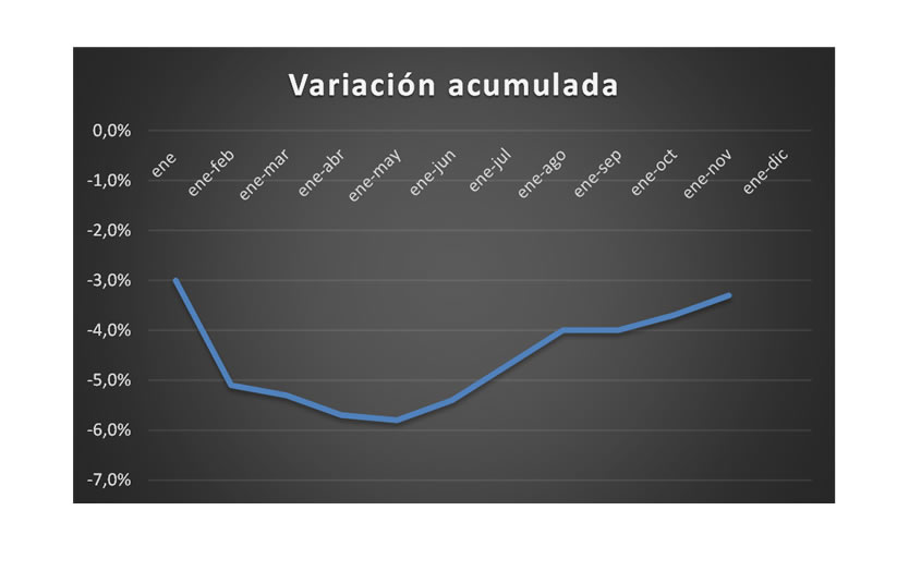 En particular, en el mes de noviembre, el resultado de la recepción nacional de leche cruda fue negativo también, arrojando una caída del 0,8%.