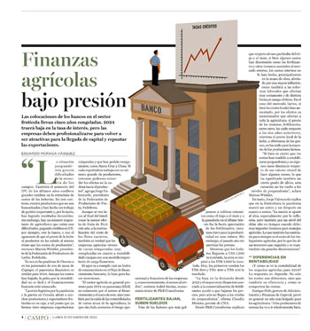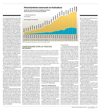 Las colocaciones de los bancos en el sector frutícola llevan cinco años congeladas. 2024 traerá baja en la tasa de interés, pero las empresas deben profesionalizarse para volver a ser atractivas para la llegada de capital y repuntar las exportaciones.