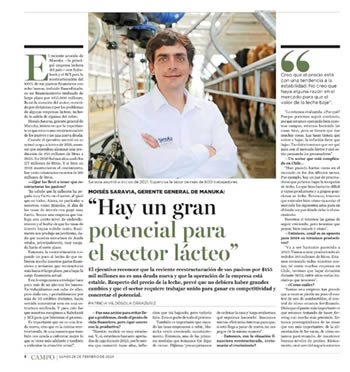 Moisés Saravia, gerente general de Manuka reconoce que la reciente reestructuración de sus pasivos por $155 mil millones no es una deuda nueva y que la operación de la empresa está estable. Respecto del precio de la leche, prevé que no debiera haber grandes cambios y que el sector requiere trabajar unido para ganar en competitividad y concretar el potencial.