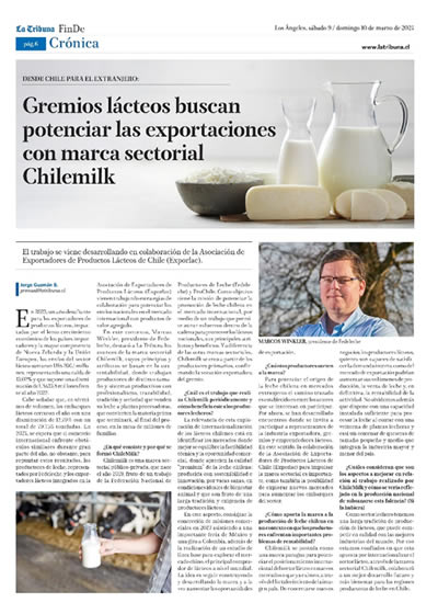 -¿En qué consiste y por qué se formó ChileMilk? Chilemilk es una marca sectorial público-privada, que nace el año 2019, fruto de un trabajo de la Federación Nacional de Productores de Leche (Fedeleche) y ProChile. Como objetivo tiene la misión de potenciar la promoción de leche chilena en el mercado internacional, por medio de un trabajo que permite aunar esfuerzos dentro de la cadena para promover los lácteos nacionales, sus principales atributos y beneficios. Y a diferencia de las otras marcas sectoriales, Chilemilk se crea a partir de los productores primarios, confirmando la vocación exportadora del gremio.