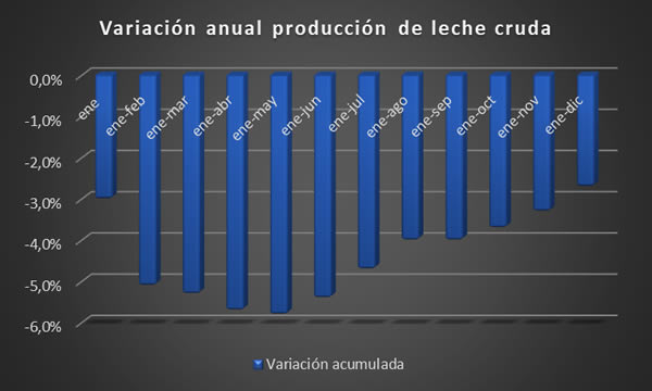 Lo anterior, supone un retroceso interanual de la producción nacional de leche cruda de 58,8 millones de litros, y encadenar 19 meses consecutivos a la baja.