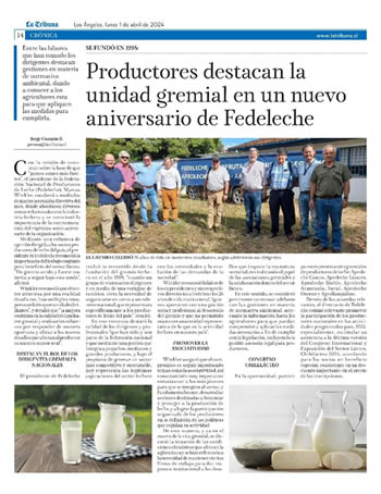 El presidente de Fedeleche realzó lo recorrido desde la fundación del gremio lechero en el año 1998, 'cuando un grupo de visionarios dirigentes y en medio de una vorágine de cambios, viera la necesidad de organizarse en torno a un referente nacional, que representara específicamente a los productores de leche del país', resaltó. En este contexto, destacó la calidad de los dirigentes y profesionales 'que han sido y son parte de la federación nacional y que mediante una gestión que integra a pequeños, medianos y grandes productores, y bajo el propósito de generar un sector más competitivo y sustentable, hoy representa las legítimas aspiraciones del sector lechero con las necesidades y la evolución de las demandas de la sociedad'. Winkler reconoció la labor de los ex presidentes y sus respectivos directorios al celebrar los 26 años de vida institucional, 'quienes aportaron con una gestión seria y profesional al desarrollo del gremio y que ha permitido mantener una entidad representativa de lo que es la actividad lechera en nuestro país'.