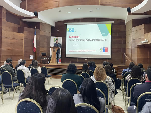 Finalmente, el Dr. Andrés Carvajal, investigador de INIA Remehue, expuso el tema: “Mastitis, nuevas respuestas para antiguos desafíos” y la Dra. María Teresa Ulloa, de la Sociedad Avances Tecnológicos Vertebral Ltda. se refirió al “Desarrollo de un bioproducto en base a bacteriófagos para el manejo integral de la mastitis bovina”.