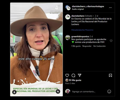 Todo comenzó el viernes 31 de mayo cuando junto la comunidad de Osorno, en el Parque Chuyaca de la ciudad, y con la participación especial de representantes gremiales y autoridades locales se conmemoró esta importante fecha para el sector, donde se resaltó los beneficios de la leche a la alimentación y la importancia de la producción láctea para el país. La actividad contó con cobertura de medios y fue difundida ampliamente por redes sociales: