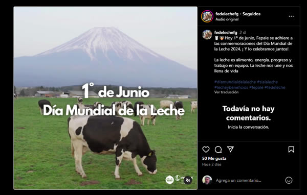 Y como ha sido tradicional, asimismo se adhirió a los festejos de la Federación Panamericana de Lechería (Fepale) mediante un mensaje de unión y llena de vida.
