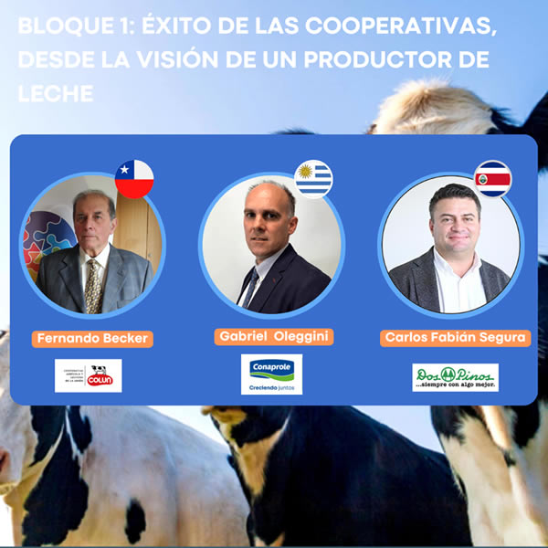 Posteriormente, el programa propone abordar la asociatividad con el panel: “Éxito de las Cooperativas, desde la visión de un Productor de Leche”, tema que será analizado por empresas líderes del país y el continente, lo cual busca promover y robustecer el desarrollo de estas organizaciones. Este segundo bloque contará con la participación de Fernando Becker, en representación de la Cooperativa Agrícola y Lechera de la Unión (Colun), Gabriel Oleggini, de la Cooperativa Nacional de Productores de Leche de Uruguay (Conaprole) y Carlos Fabián Segura, de la Cooperativa de Productores de Leche Dos Pinos de Costa Rica.