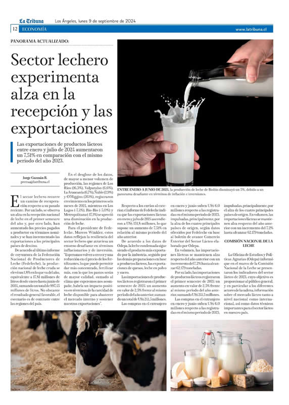 La Oficina de Estudios y Políticas Agrarias (Odepa) informó que en el marco de la Comisión Nacional de la Leche se presentaron los indicadores del sector lácteo de 2023, cuyo objetivo es proporcionar al público general, y en particular a los diferentes actores de la cadena, información sobre el mercado lácteo tanto a nivel nacional como internacional, así como datos técnicos importantes para el sector lácteo en nuestro país.