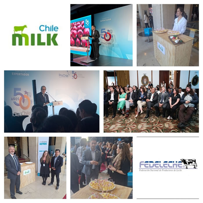 En virtud de lo anterior, agregó que, “desde Fedeleche saludamos a las autoridades de ProChile y a cada uno de sus funcionarios, agradeciendo todo su apoyo en diversas actividades en pro del desarrollo del sector lácteo como es el Congreso Internacional y Exposición del Sector Lácteo, Chilelácteo, donde se promueven las exportaciones y se fomenta la internacionalización, junto a la realización de talleres para mejorar la competitividad de las empresas exportadoras de lácteos, abordando regulaciones y procedimientos en mercados extranjeros, y la creación de una marca que representa al sector lechero chileno como Chilemilk”.