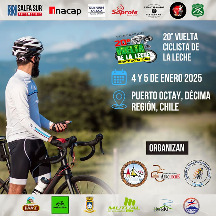 Este próximo 4 y 5 de enero, Puerto Octay será el epicentro del ciclismo cuando más de 200 ciclistas de todas las edades y diversas regiones del país participen en la 20ª Vuelta Ciclista Internacional de la Leche, un evento que promete destacar en el calendario deportivo nacional.