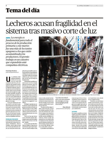 El presidente de la Federación Nacional de Productores Lecheros (Fedeleche), Marcos Winkler, explicó que se trata de un tema que tiene dos aristas: por una parte, está la complicación que significa para todos los lecheros que requieren ordeñar sus vacas dos o tres veces al día, incluso los sistemas robóticos, que lo hacen todo el día y en ese caso la energía es fundamental.