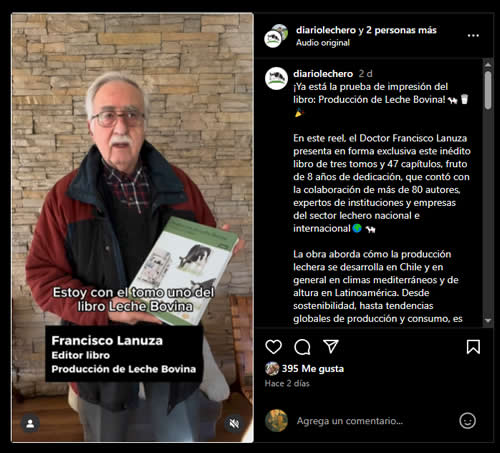 Actualmente, el libro se encuentra en su última etapa de edición y revisión para su impresión final, siendo una obra inédita en Chile, que aborda diferentes aspectos de la producción láctea, sistemas productivos, industrialización, tecnología, tendencias globales, sostenibilidad, hasta la importancia de los productos lácteos para el desarrollo humano y la nutrición, así como las preferencias de consumo, entre muchos otros temas.