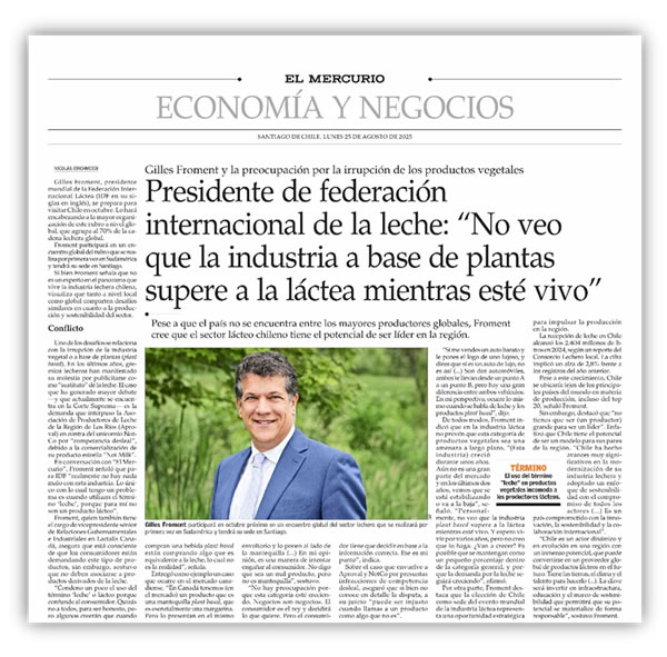 Por otra parte, Froment destaca que la elección de Chile como sede del evento mundial de la industria láctea representa una oportunidad estratégica para impulsar la producción en la región.