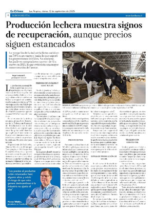 Empresas como Colun, en la región de Los Ríos, están impulsando a los productores a crecer para llenar una nueva planta de elaboración de quesos, prevista para diciembre del próximo año, lo que genera incentivos para aumentar la producción a pesar de la limitada superficie disponible para crecimiento. De igual forma, la recepción de leche en los grupos comerciales ha crecido, lo que refleja la necesidad creciente de leche para abastecer la industria procesadora.