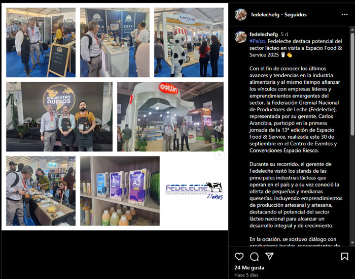 Durante su recorrido, el gerente de Fedeleche visitó los stands de las principales industrias lácteas que operan en el país y a su vez conoció la oferta de pequeñas y medianas queserías, incluyendo emprendimientos de producción artesanal y artesana, destacando el potencial del sector lácteo nacional para alcanzar un desarrollo integral.