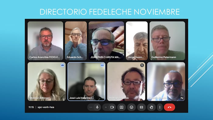 Santiago 20 de noviembre de 2025.- La Federación Nacional de Productores de Leche (Fedeleche) realizó el 18 de noviembre su reunión mensual de directorio en formato virtual con la participación de sus gremios asociados: Aproleche Ñuble, Aproleche Bio Bio, Aproleche Araucanía, Saval, Aproleche Osorno y Agrollanquihue. En la instancia, se trataron asuntos productivos, regulatorios y de etiquetado, con énfasis en la coordinación gremial para proteger la transparencia y la competencia en el mercado.