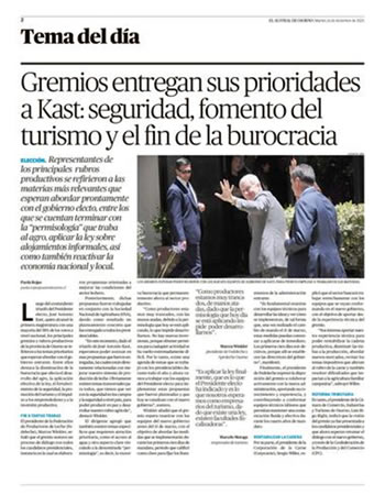 En tanto, el presidente de la Cámara de Comercio, Industrias y Turismo de Osorno, Luis Rigo-Righi, indicó que la visión del gremio ya fue presentada a los candidatos presidenciales y que ahora esperan retomar el diálogo con el nuevo gobierno, a través de la Confederación de la Producción y del Comercio (CPC).