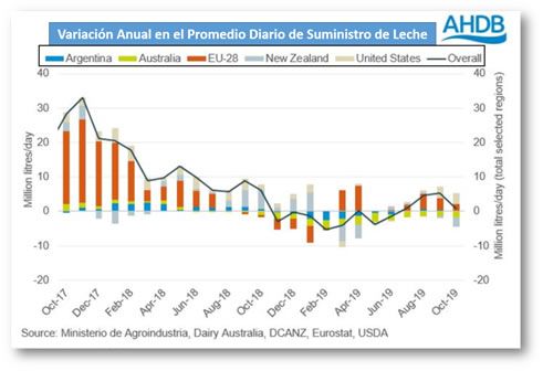 Se informa un crecimiento leve en la Unión Europea, los EE. UU., mientras que Nueva Zelanda (NZ), Australia y Argentina experimentaron descensos.
