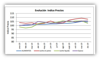Para el mes de diciembre 2019 se observa que entre los productos con mayor incidencia al alza no aparece ningún producto lácteo. Por otra parte, dentro de los productos con una mayor incidencia a la baja, dentro de los alimentos, aparece la leche líquida.
