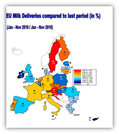Las entregas de leche en la Unión Europea aumentaron en un 0,9% en noviembre pasado en comparación con un año antes, lo que resultó en 109.000 t más de leche, de acuerdo con los últimos datos del Observatorio lácteo de la UE.