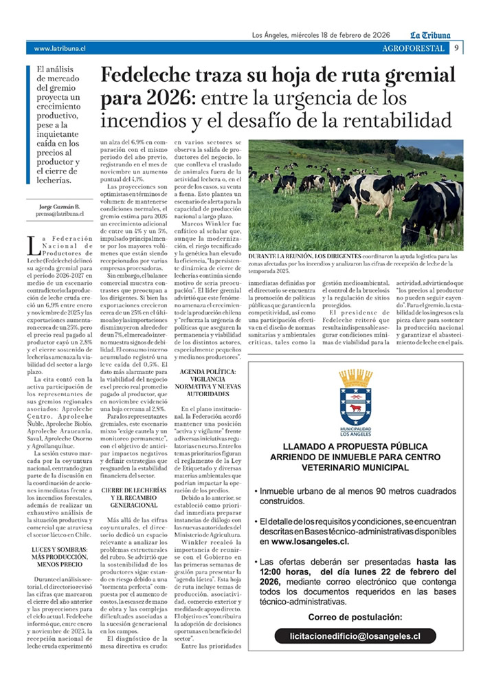 La sesión estuvo marcada por la coyuntura nacional, centrando gran parte de la discusión en la coordinación de acciones inmediatas frente a los incendios forestales, además de realizar un exhaustivo análisis de la situación productiva y comercial que atraviesa el sector lácteo en Chile.